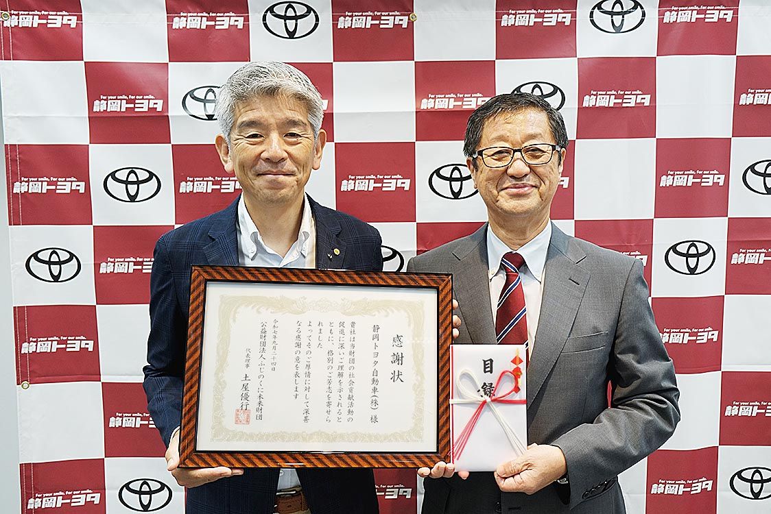 【静岡】静岡トヨタ(小野田剛久社長)は、県内のNPOや市民活動団体を支援するふじのくに未来財団(土屋優行代表理事)に、「静岡トヨタハイブリッド基金」として2024年度に積み立てた100万円を寄付した。 この基金事業は、ハイブリッド車(HV...