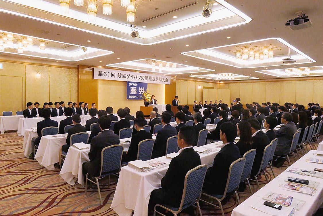 【岐阜】岐阜ダイハツ(石附郁社長)労働組合は20日、岐阜市のホテルで「第61回定期大会」を開催した。組合員194人のほか、ダイハツ販売労働組合連合会の上園尚也副執行委員長、仙田晃宏衆議院議員らが出席した。大会では過去1年間の活動を振り返り...