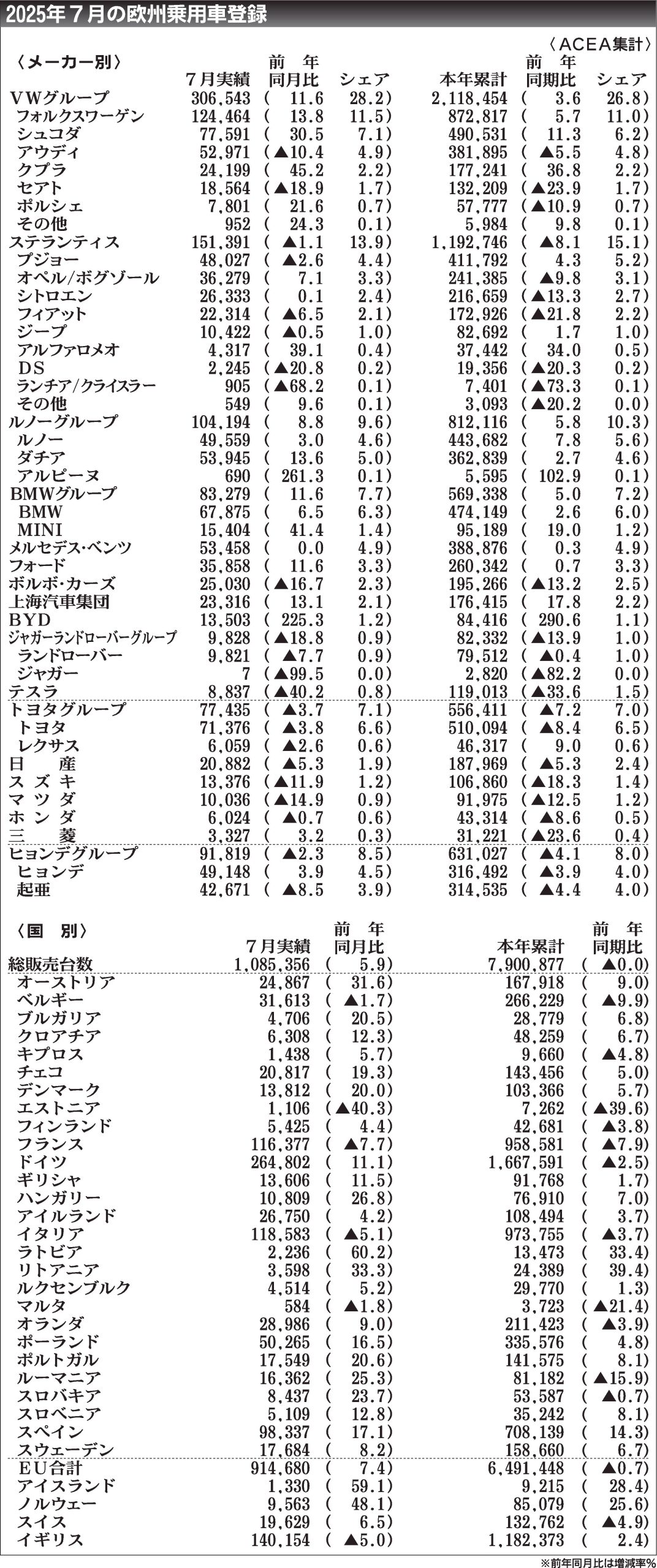 〈2025年7月の欧州乗用車登録〉