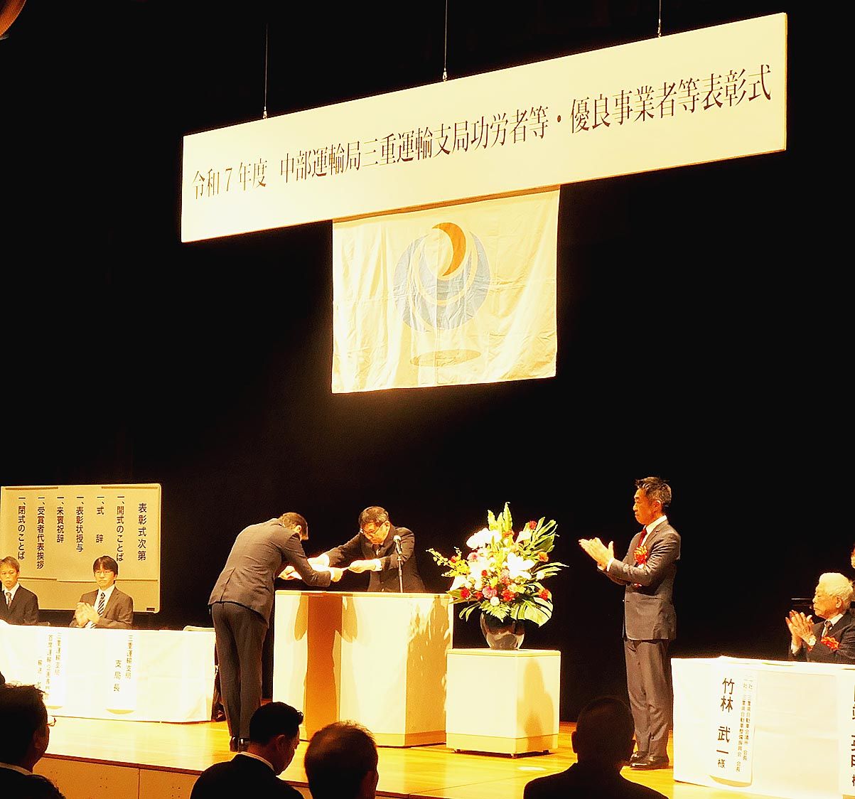 【津】三重運輸支局は21日、津市の男女共同参画センターで「令和7年度中部運輸局三重運輸支局功労者等・優良事業者等表彰式」を開催した。小中太三重運輸支局長は「長年の自動車業界への貢献に感謝する。今後はさまざまな課題への対応を期待したい」とあ...