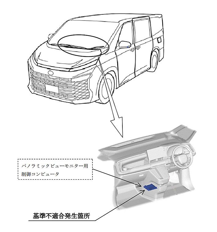 トヨタ自動車は、「ノア」「ヴォクシー」「アルファード」「プリウス」など42車種の「パノラミックビューモニター」に不具合があるとして、国土交通省にリコールを届け出た。対象は2021年9月1日から25年9月25日までに生産した計128万5002台。