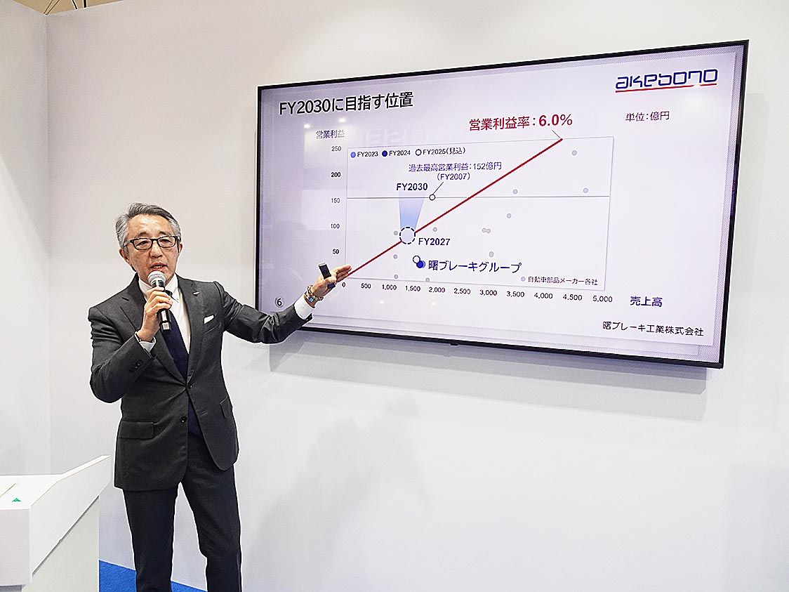 曙ブレーキ工業は、世界ラリー選手権(WRC)で走行するマシン向けに設計したモータースポーツ用ブレーキキャリパーを初出展。また、創業時から現在に至るまでの商品や、将来の需要を見据えたブレーキ製品なども紹介した。長岡宏社長CEO(最高経営責任...