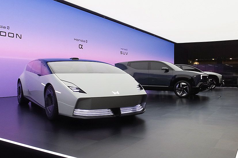 ホンダブースでセンターを飾るのは、新型EV「ゼロ」シリーズ。初公開はエントリーモデルの小型SUV「セロアルファ」だが、クルマ好きとしては隣に並ぶ、まるでスーパーカーのようなエッジの立った低いシルエットが個性的なJMS初披露となる「サルーン」が気になる。未来感満点なのに、ほぼこのままのデザインで市販するというのだから興味は尽きない。